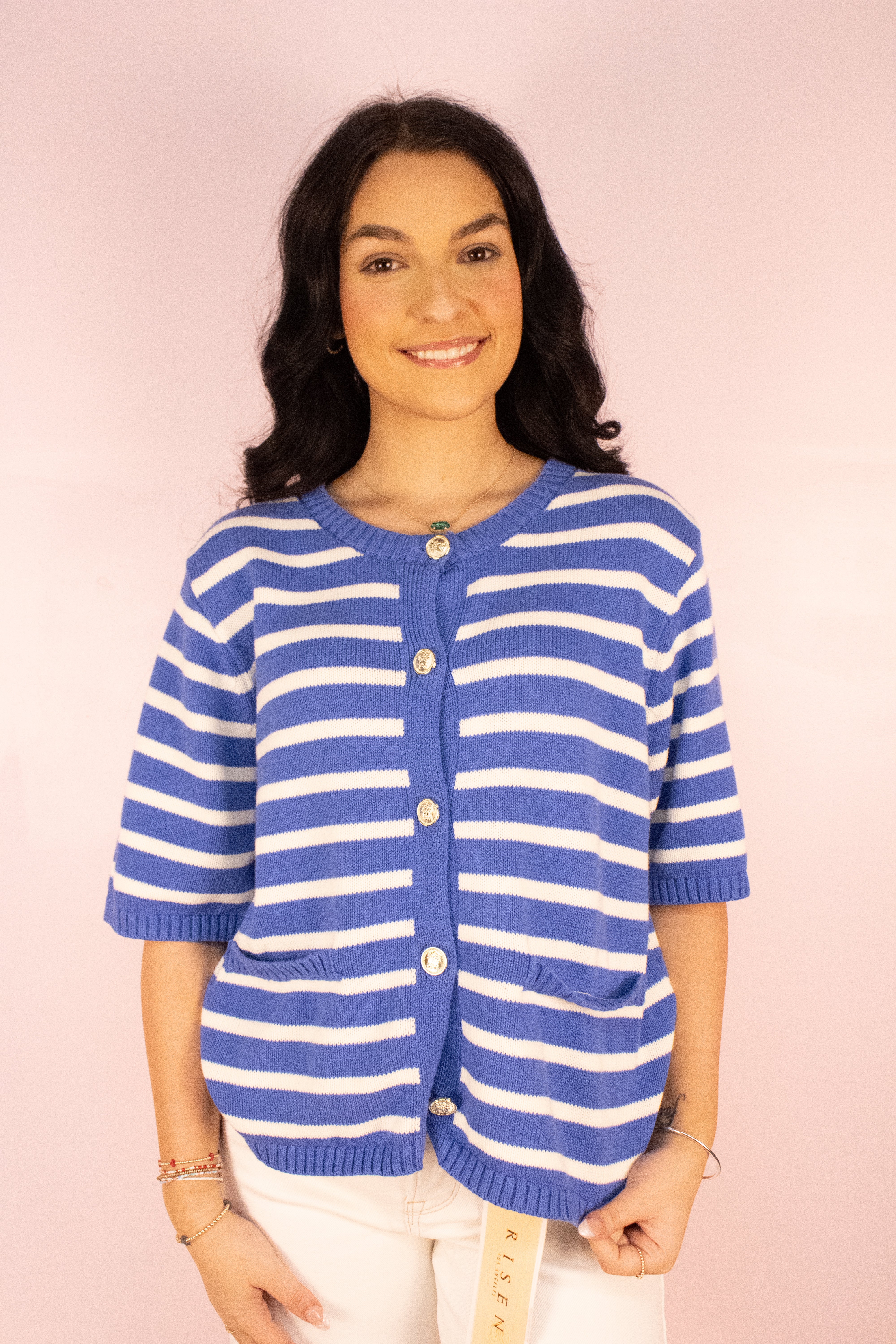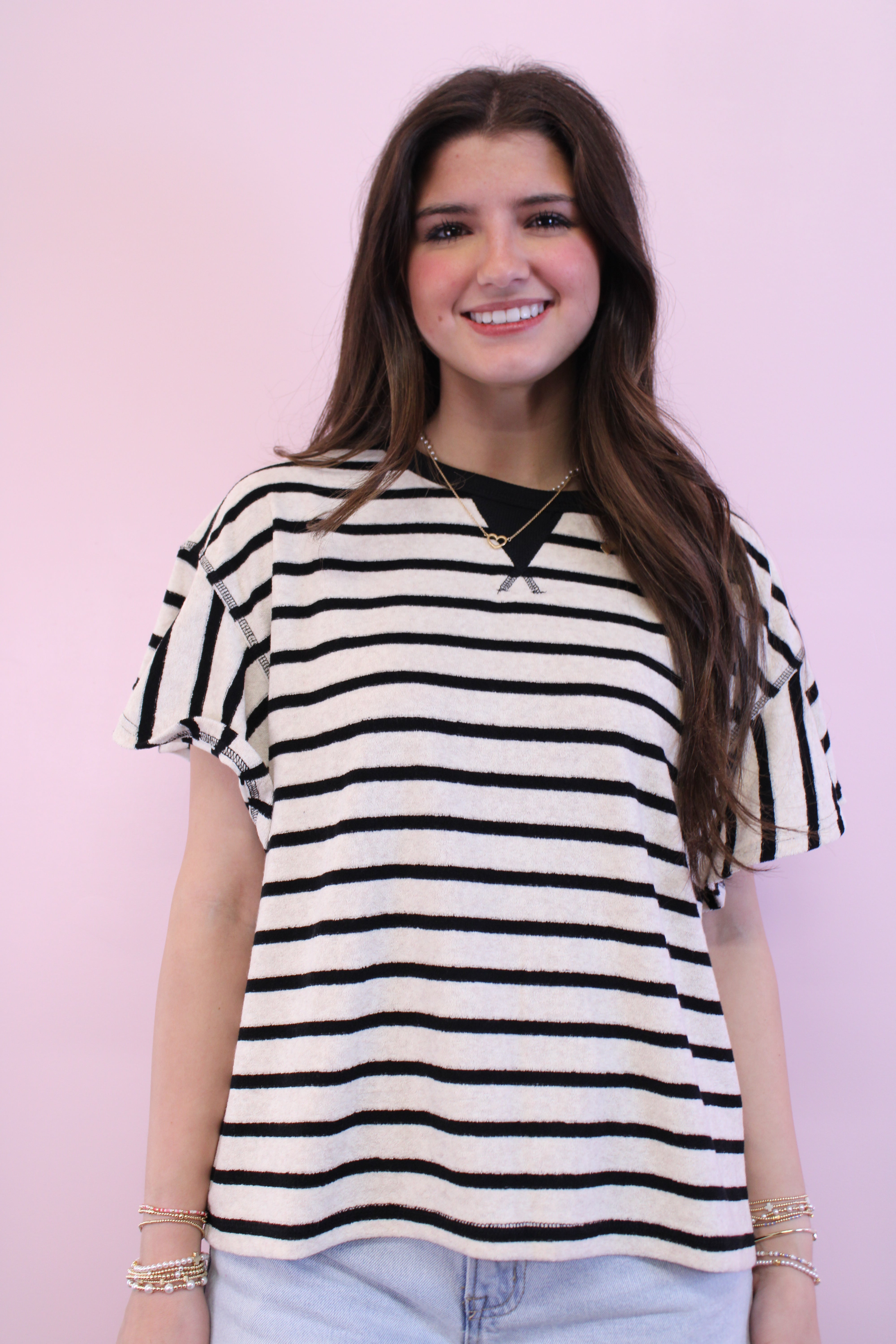 Button-Front Knit Stripe Top