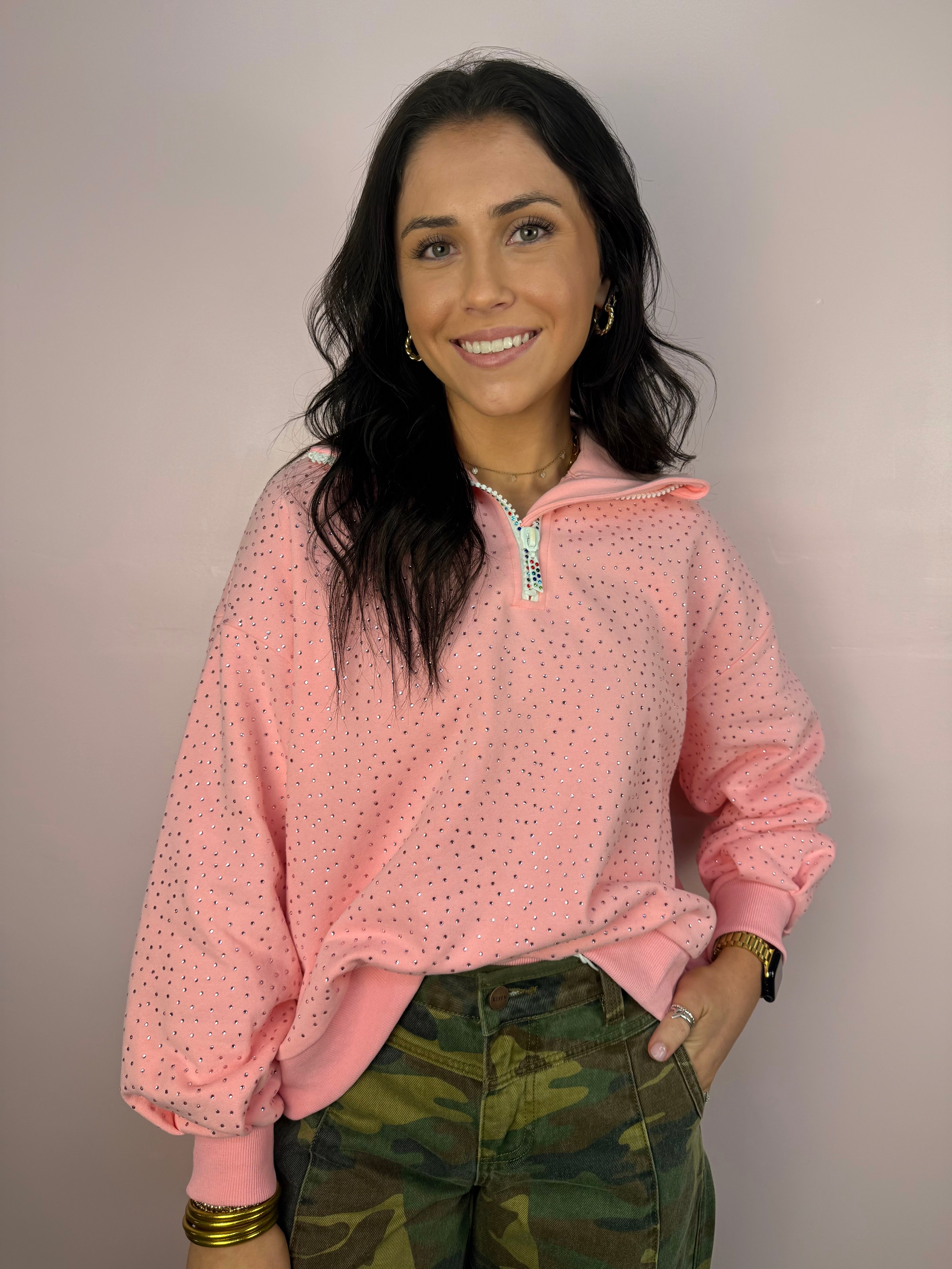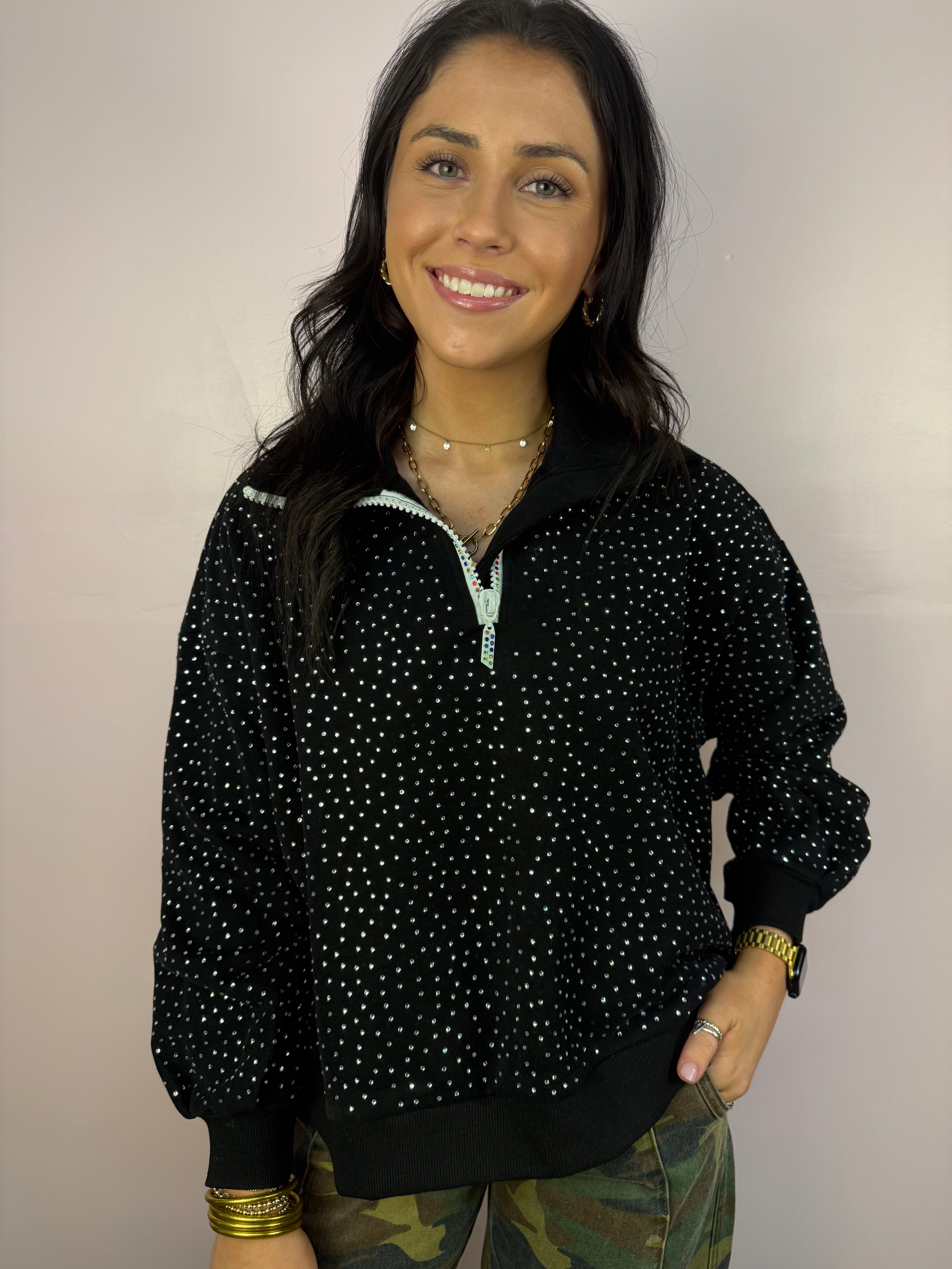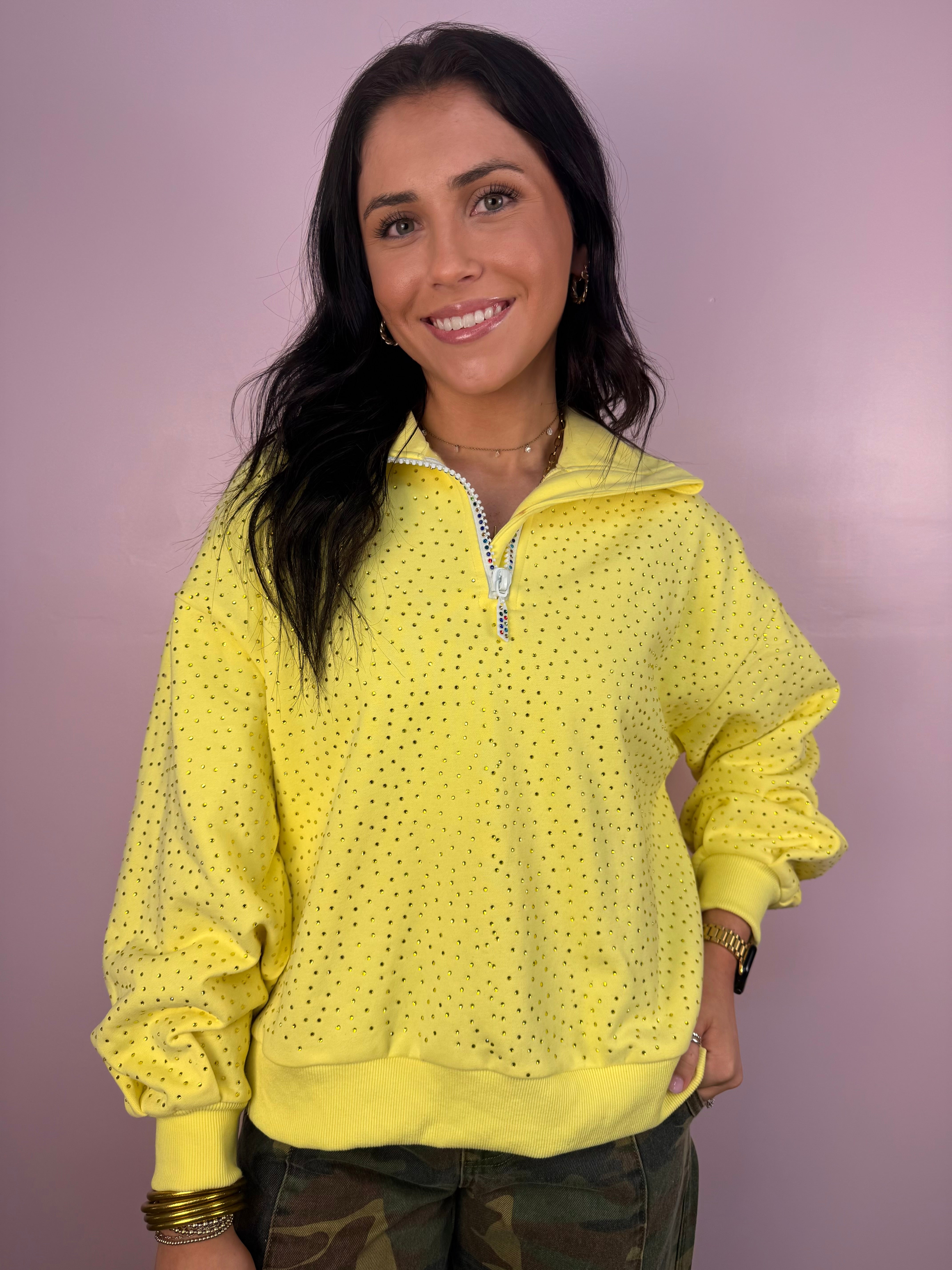 Butter Yellow Rhinestone Quarter Zip