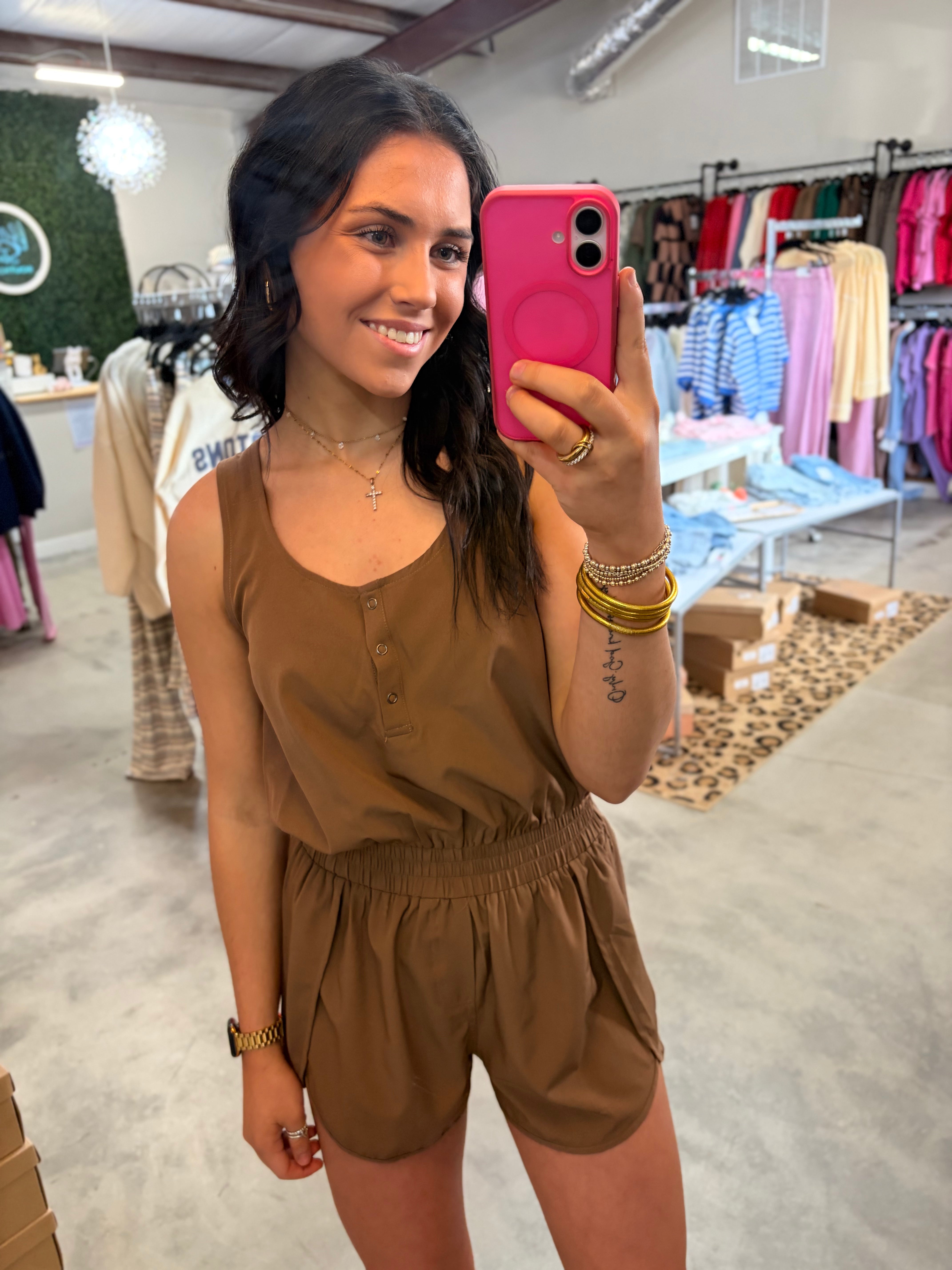Button Down Activewear Romper