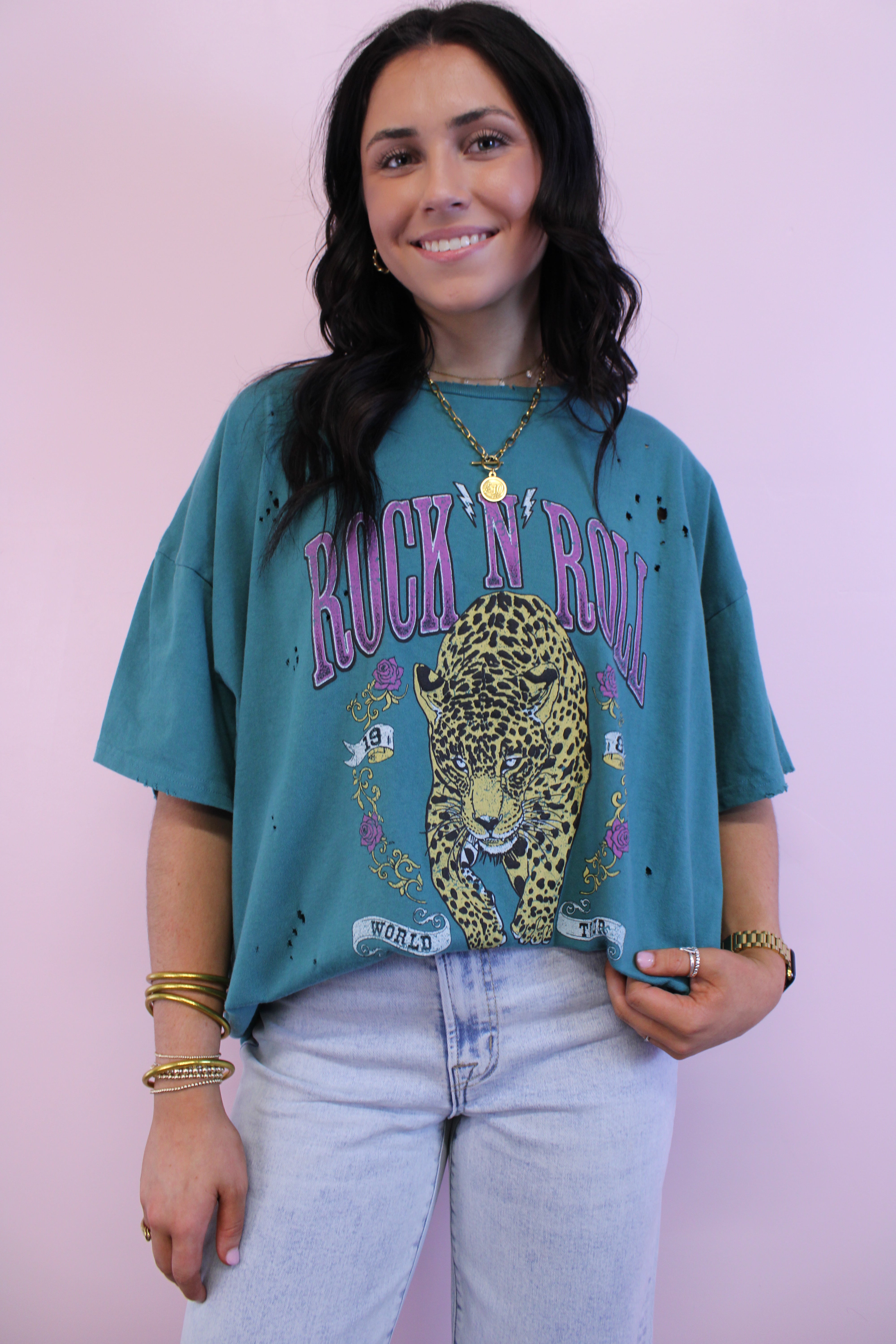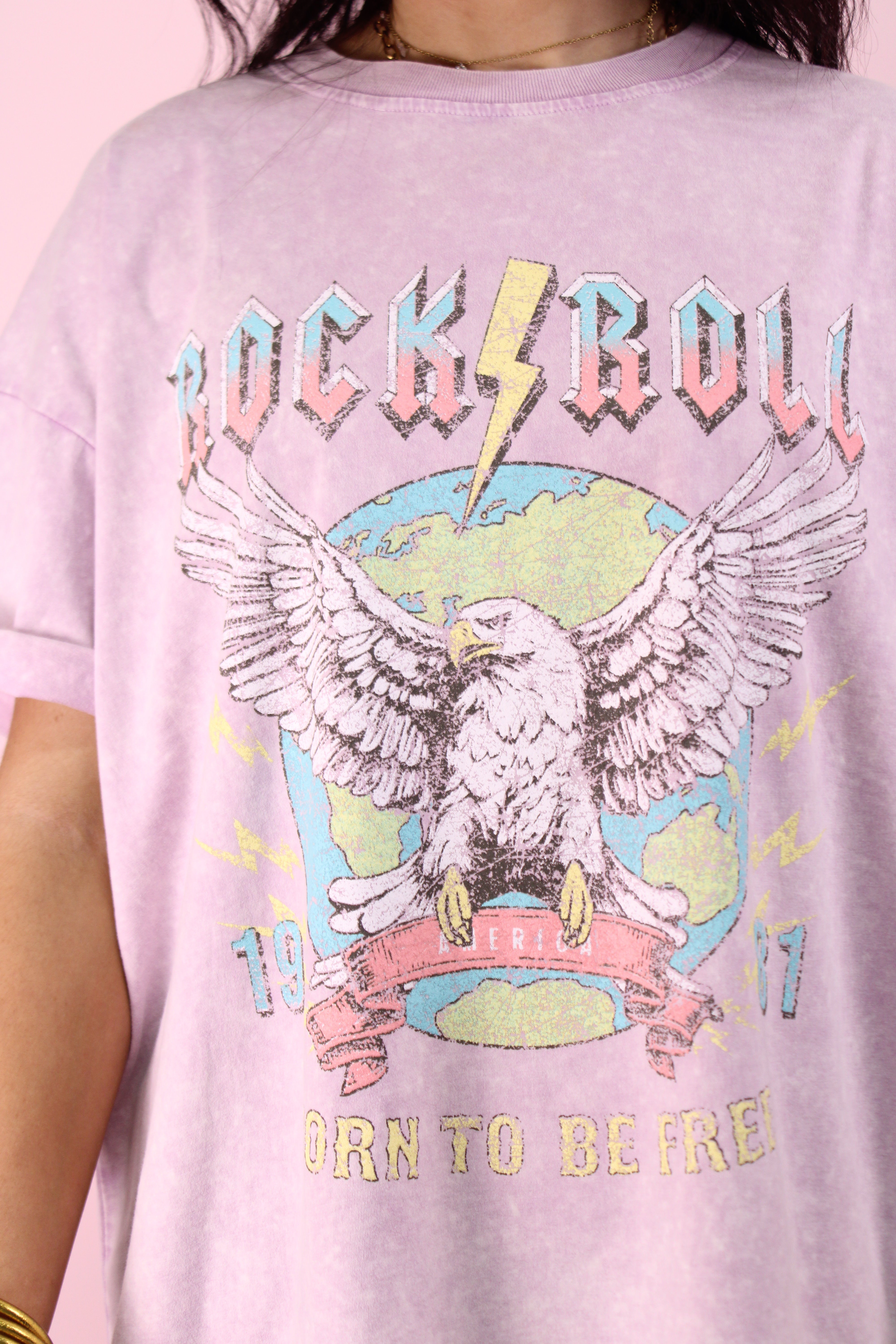 Rock N Roll Born To Be Free Lavendar acid washed tee