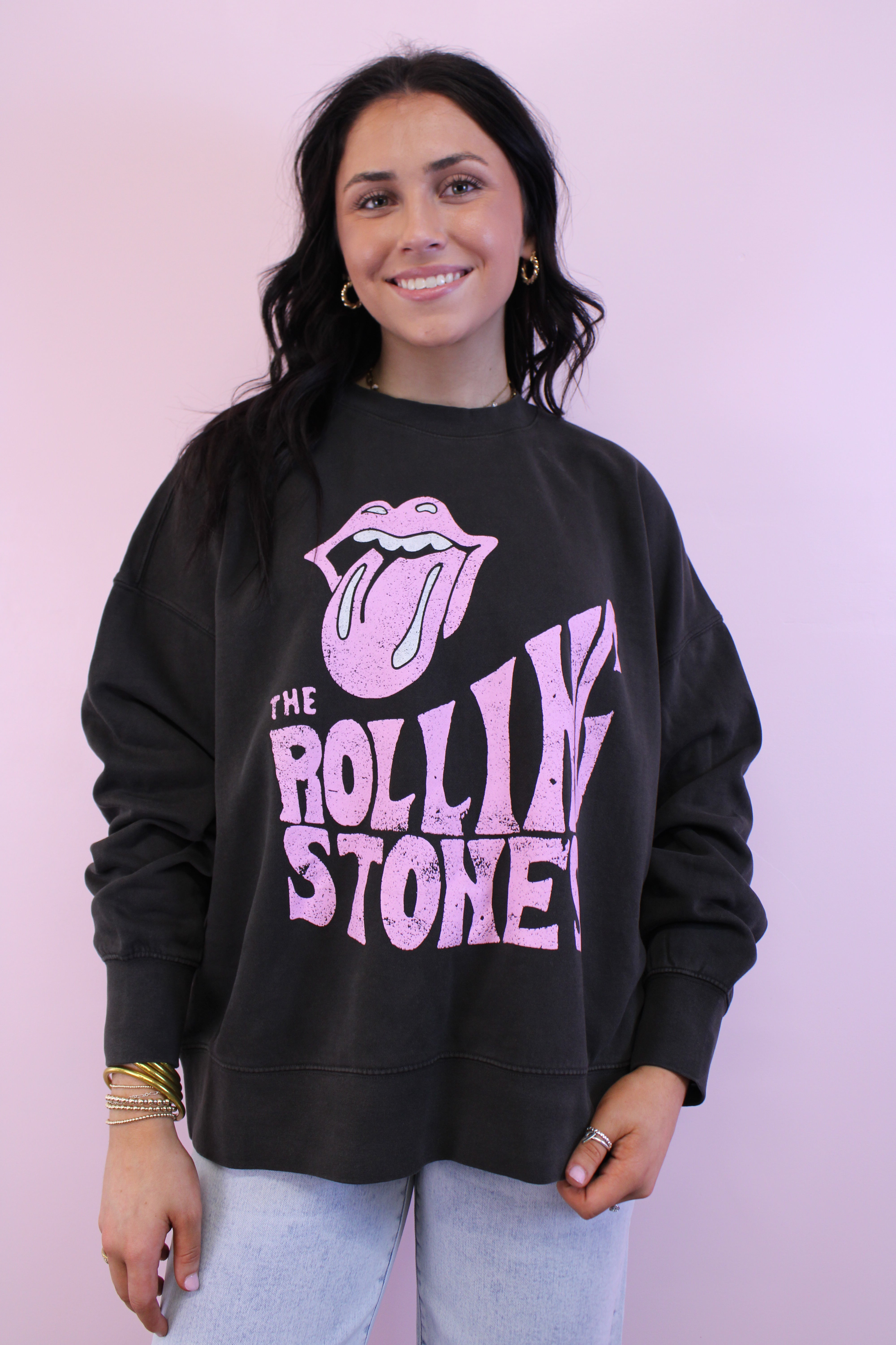 Rolling Stones Dazed Black Hi-Dive Oversized Crew Sweatshirt