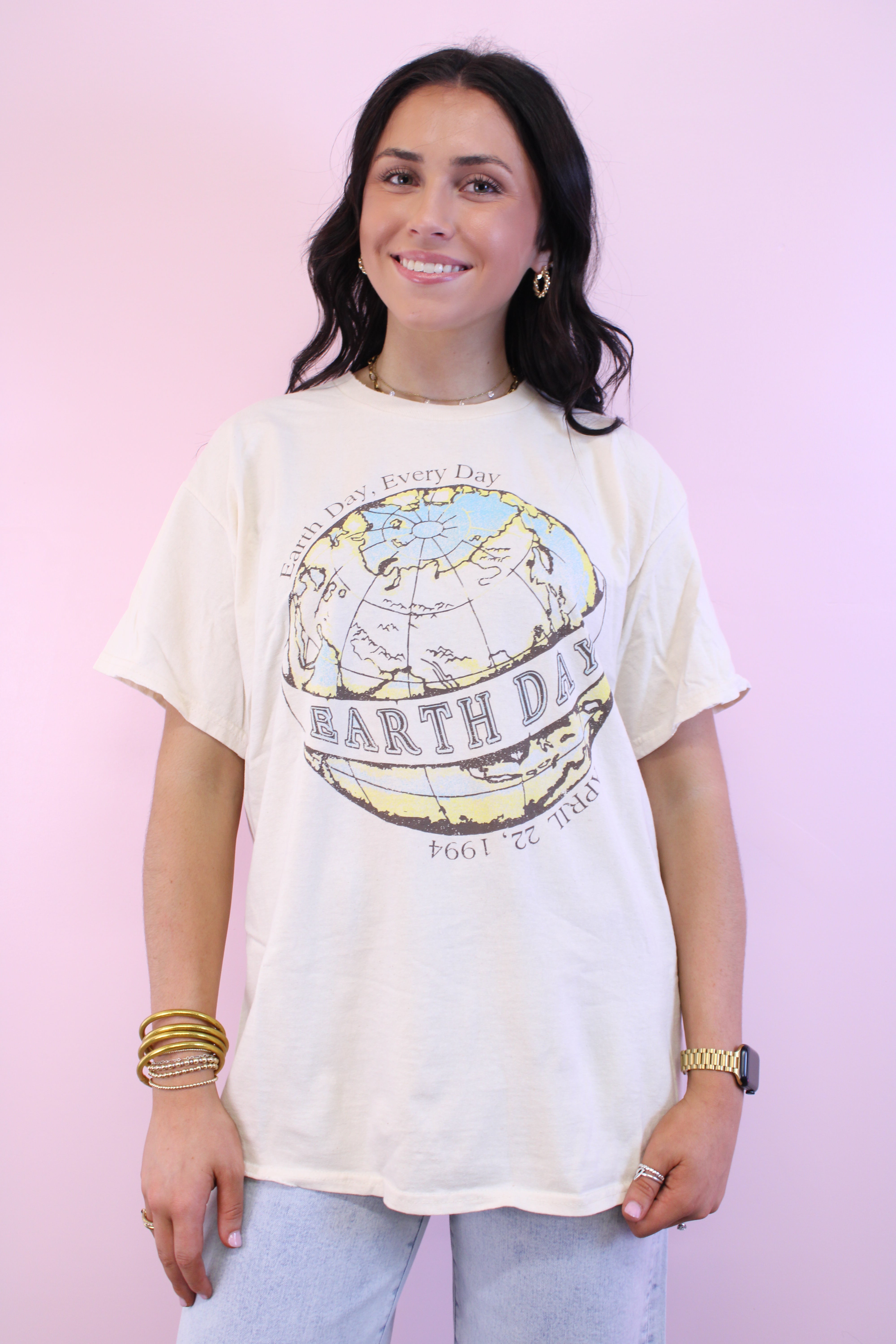 Earth Day Off White Thrifted Tee
