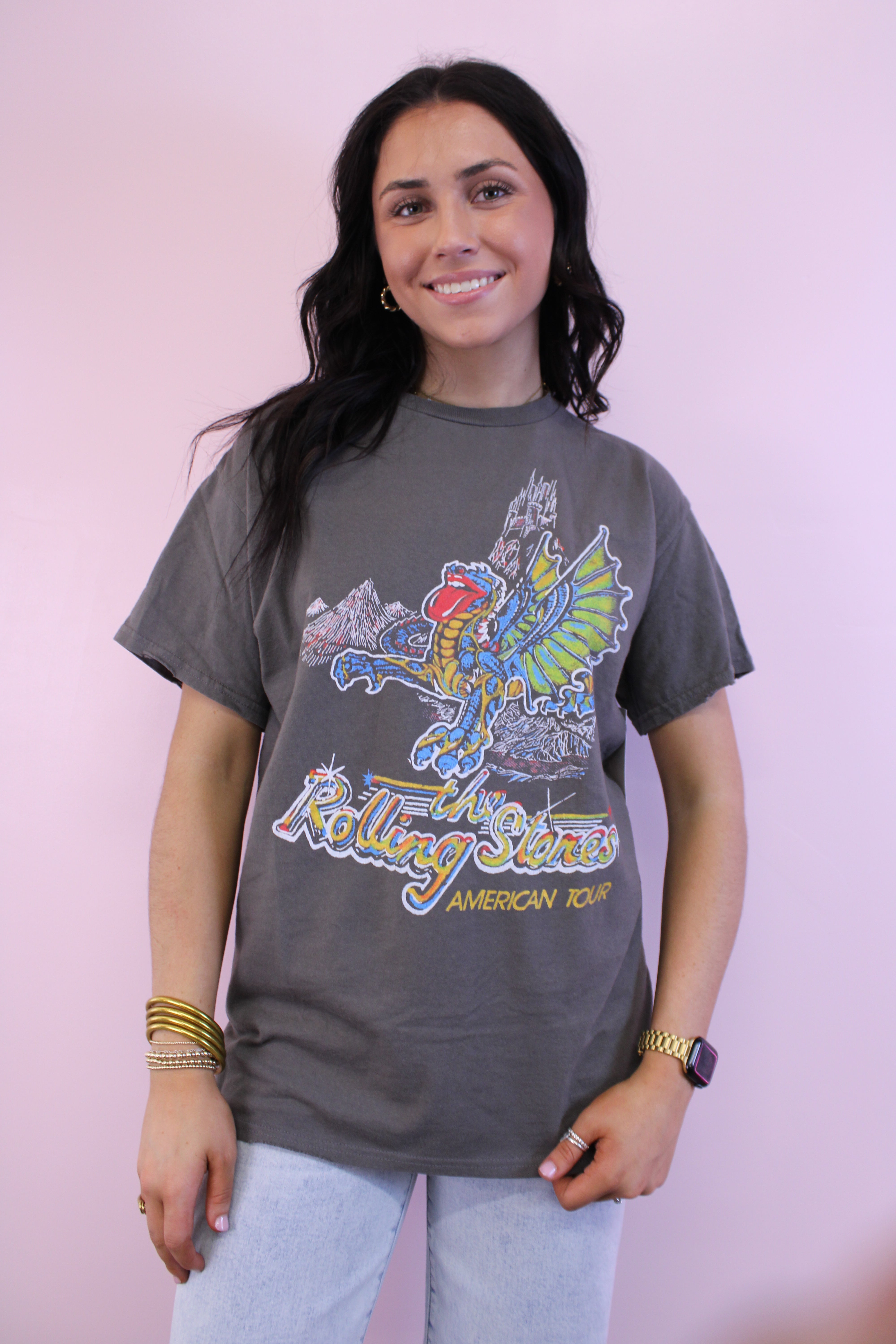 Rolling Stones USA Dragon Tour Charcoal Thrifted Graphic Tee
