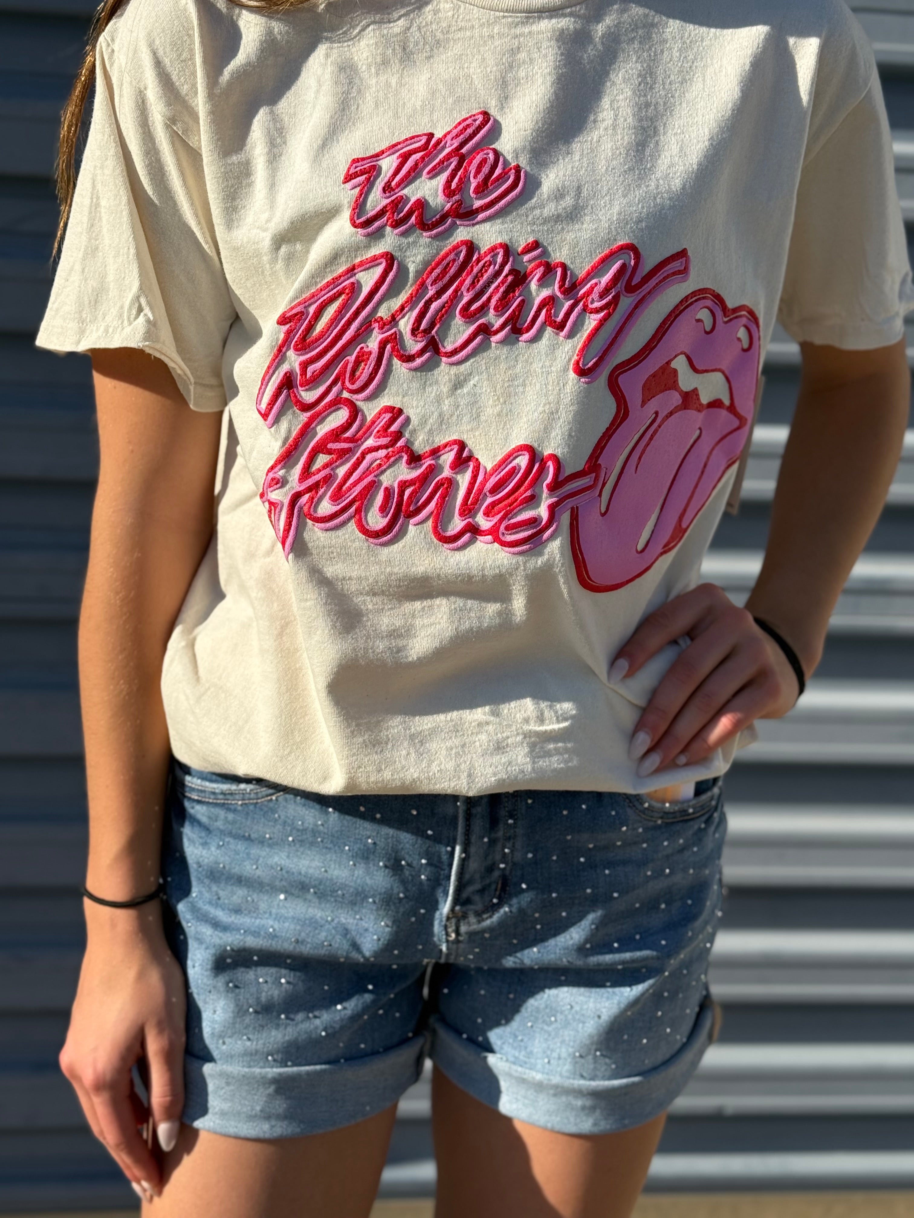 Rolling Stones Malibu Puff Ink Off White Thrifted Tee