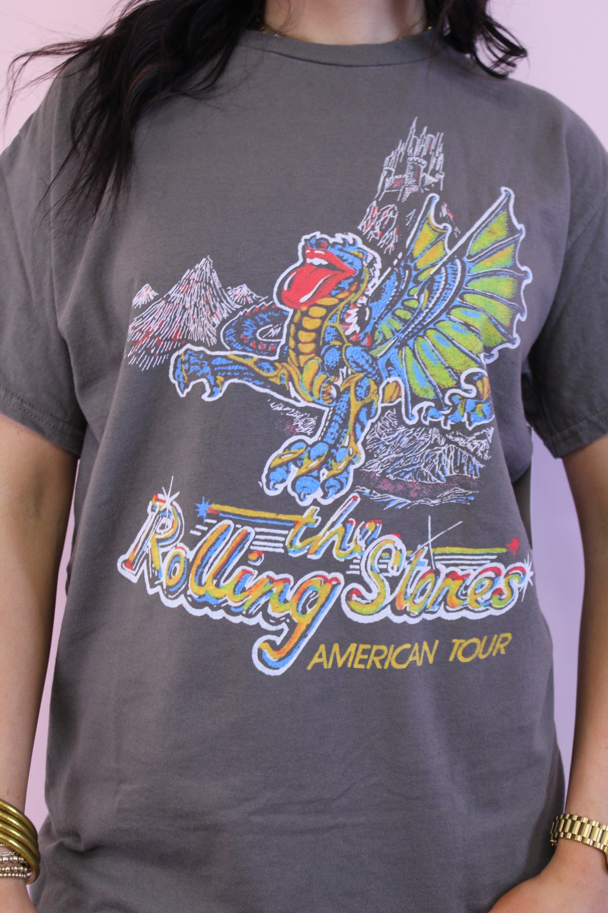 Rolling Stones USA Dragon Tour Charcoal Thrifted Graphic Tee
