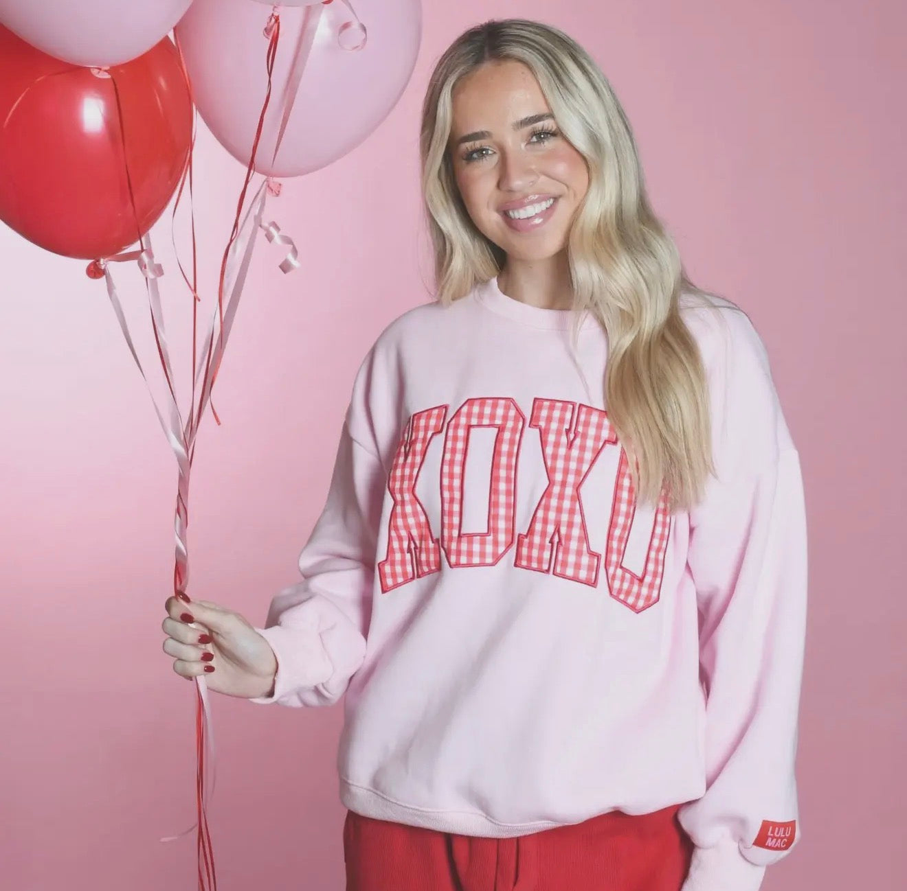Lulu Mac - Pink & red gingham Xoxo pullover