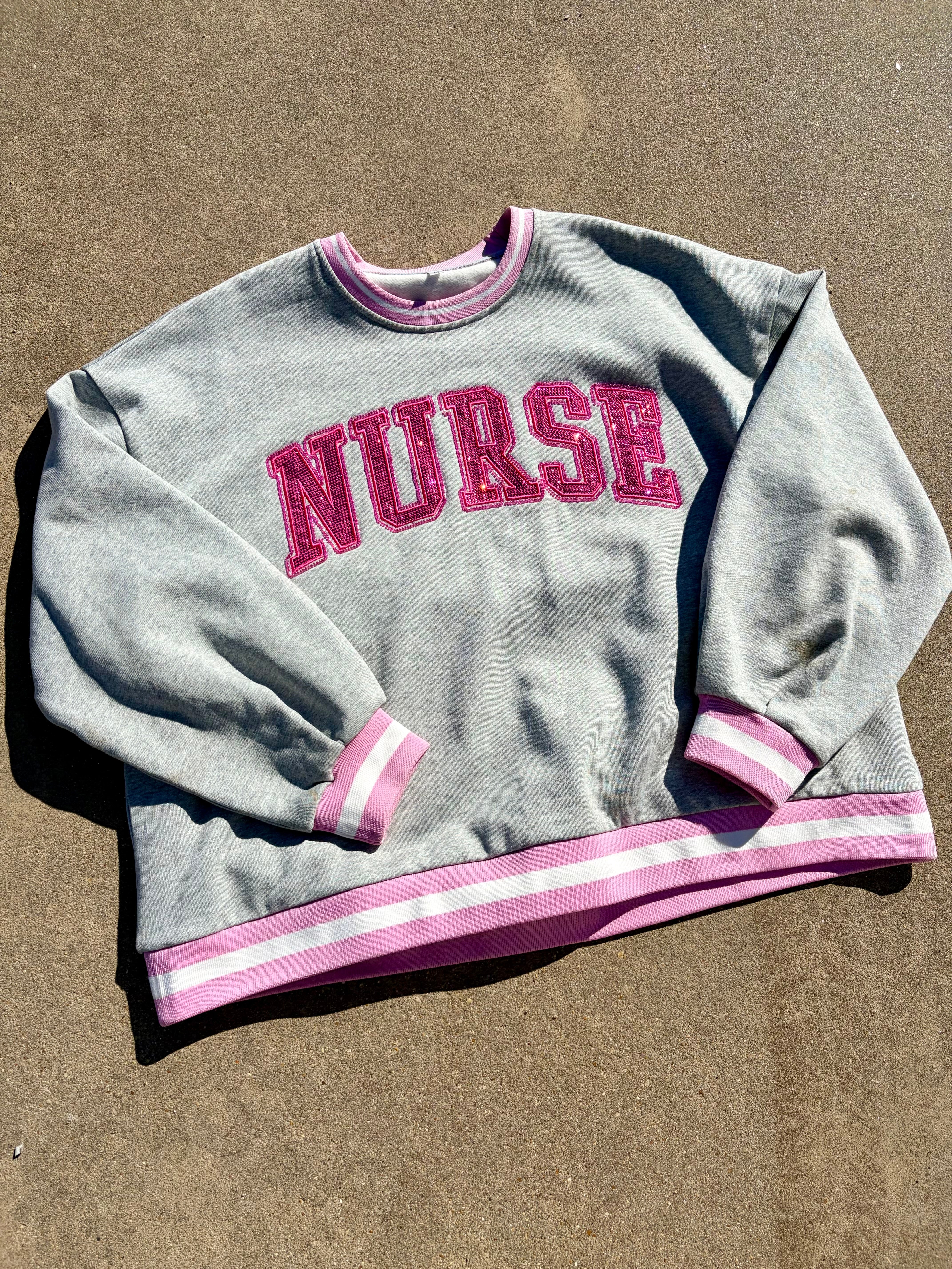 Nurse PINK rhinestoned varsity pullover