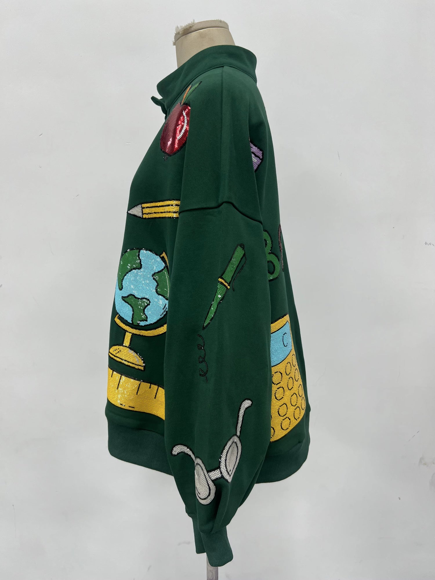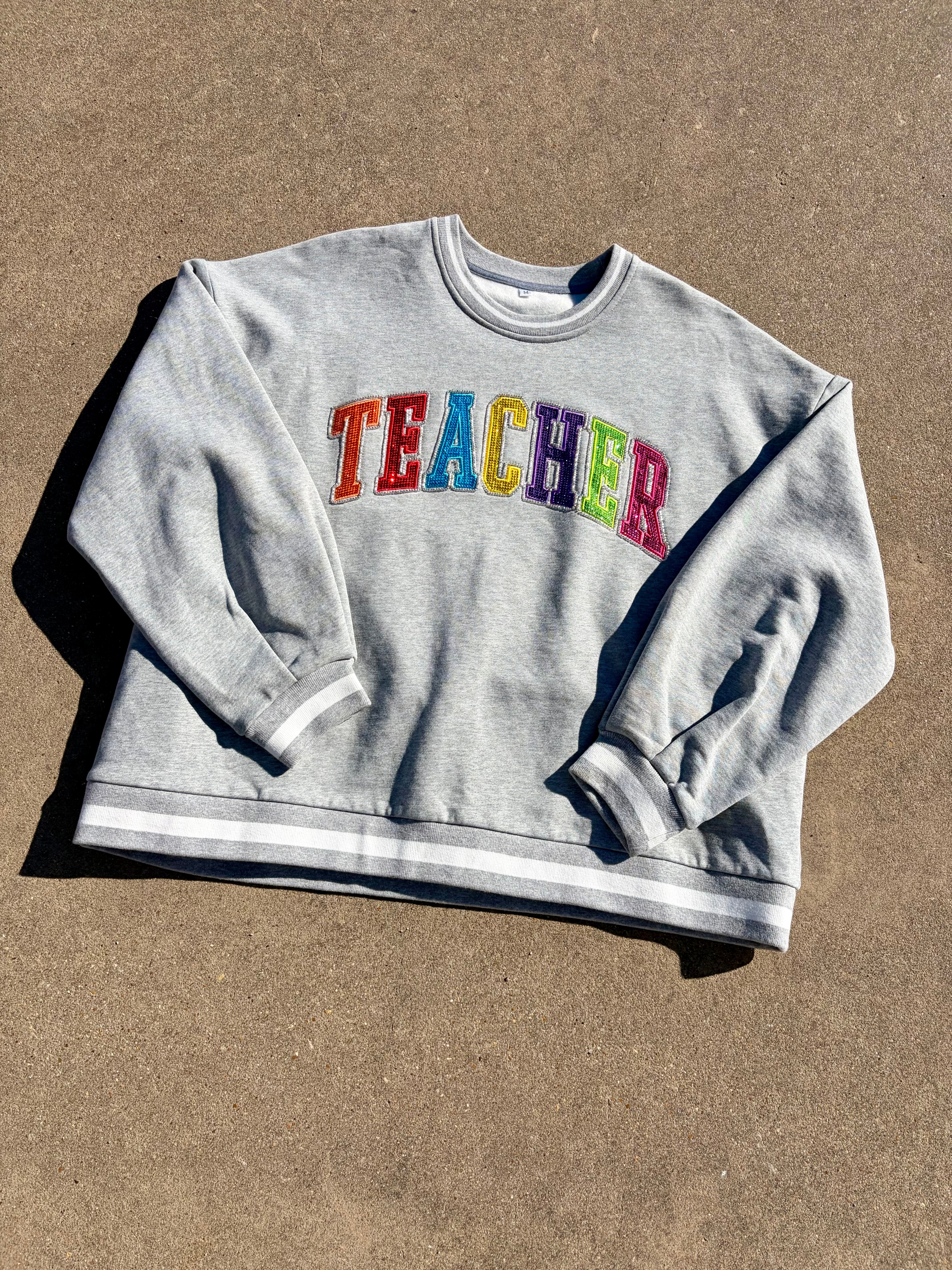 Teacher rhinestone beaded varsity pullover