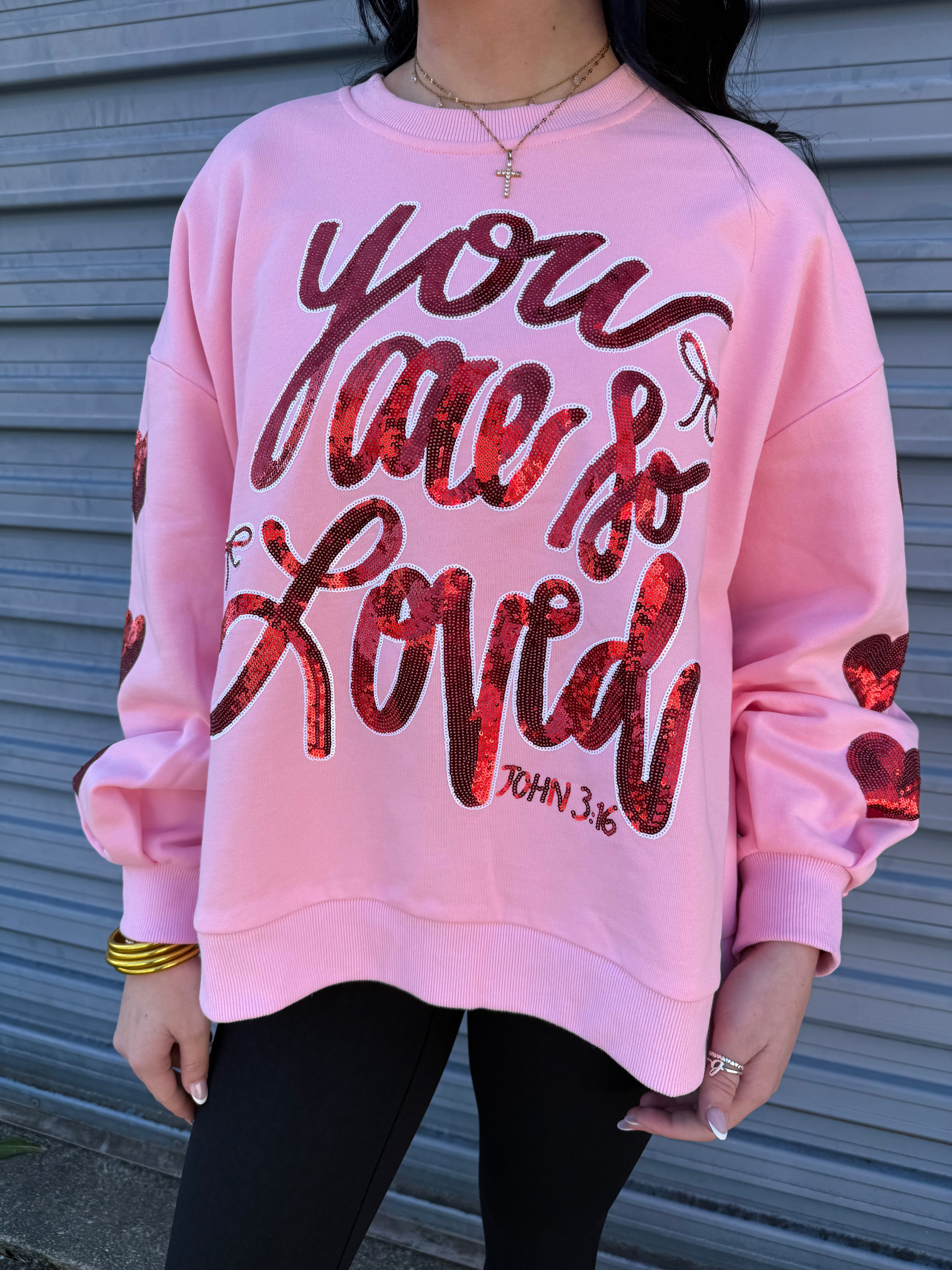 You are so LOVED sequin pullover