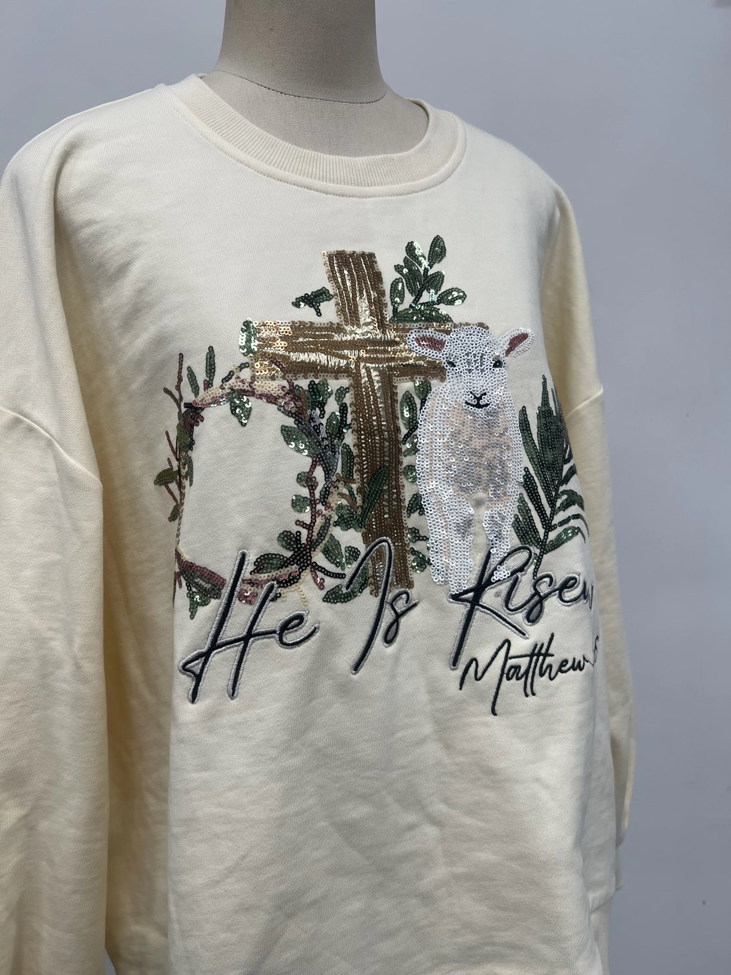 Victory over death cross sequin pullover