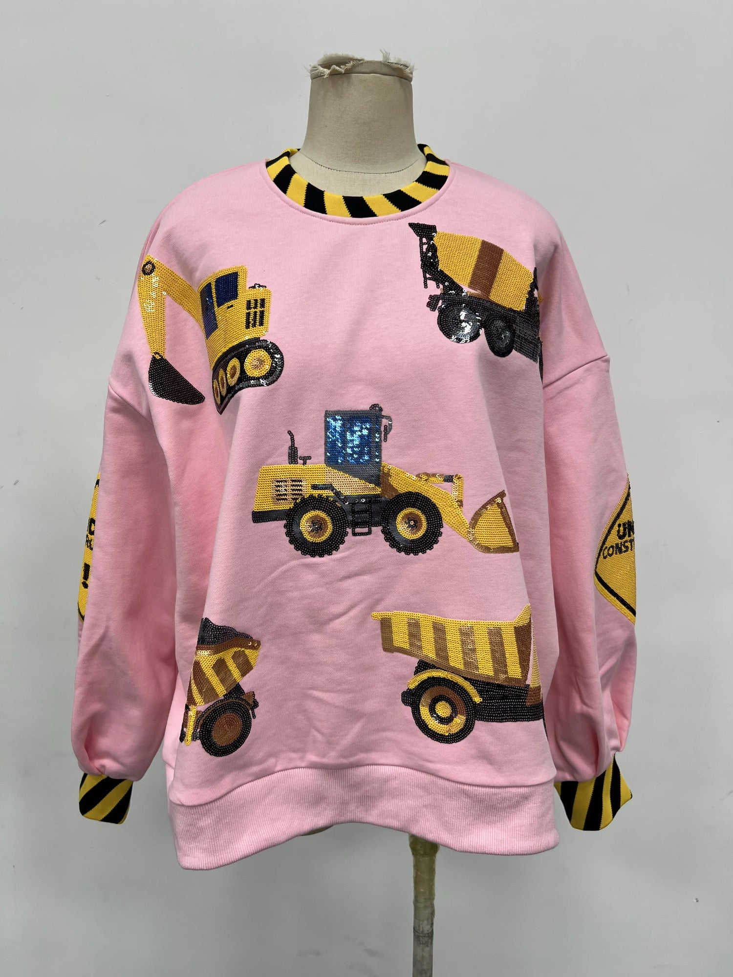 Pretty in pink construction sequin pullover