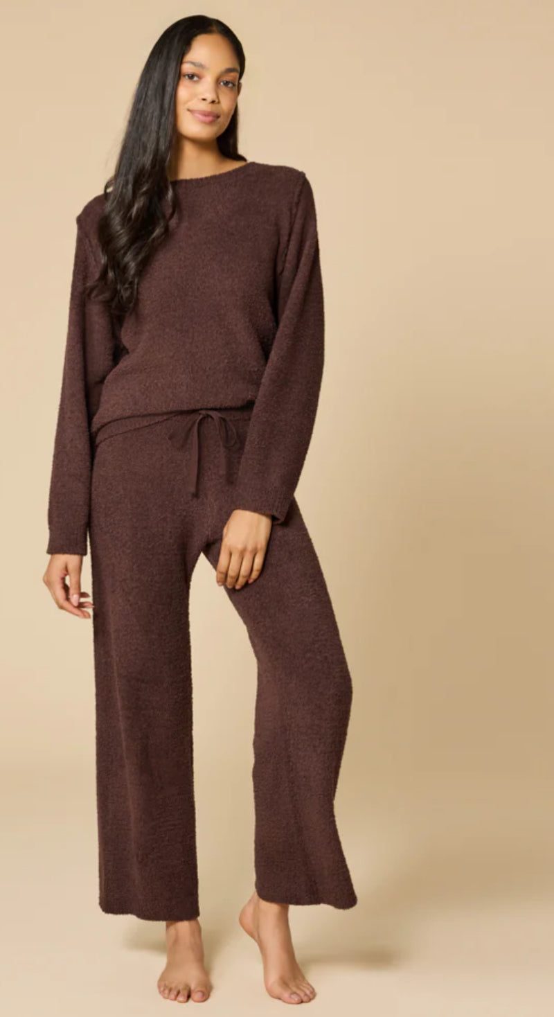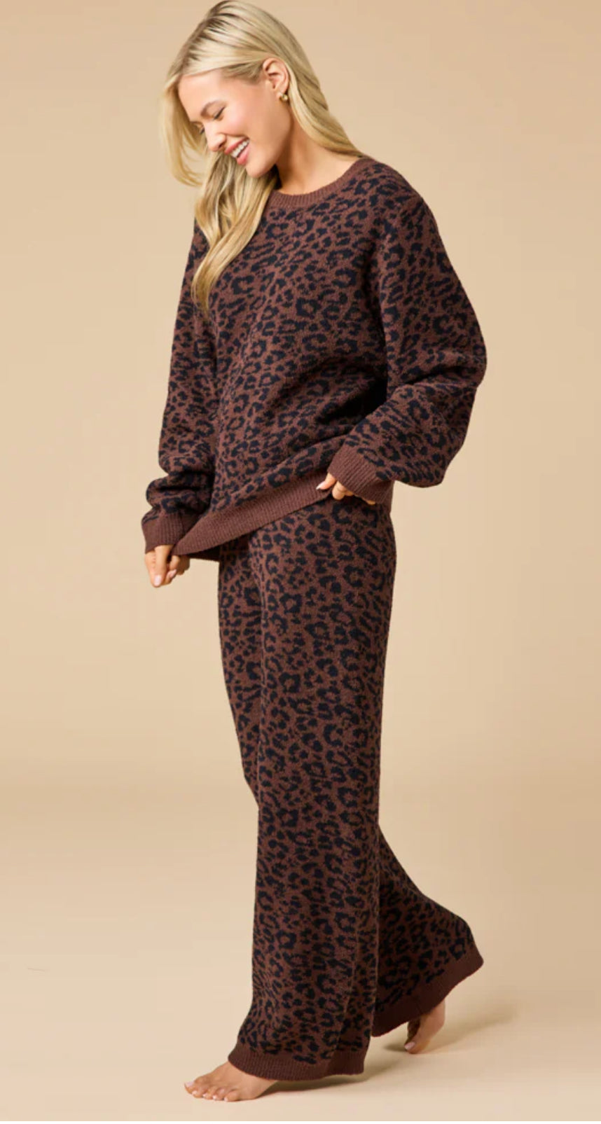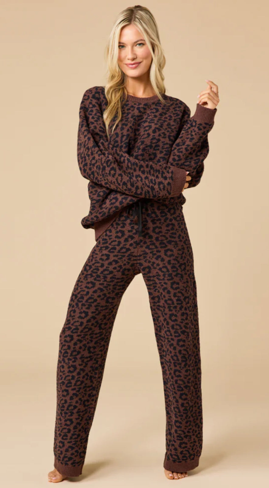 Softies Marshmallow Leopard Espresso Print Crew Neck Lounge Set