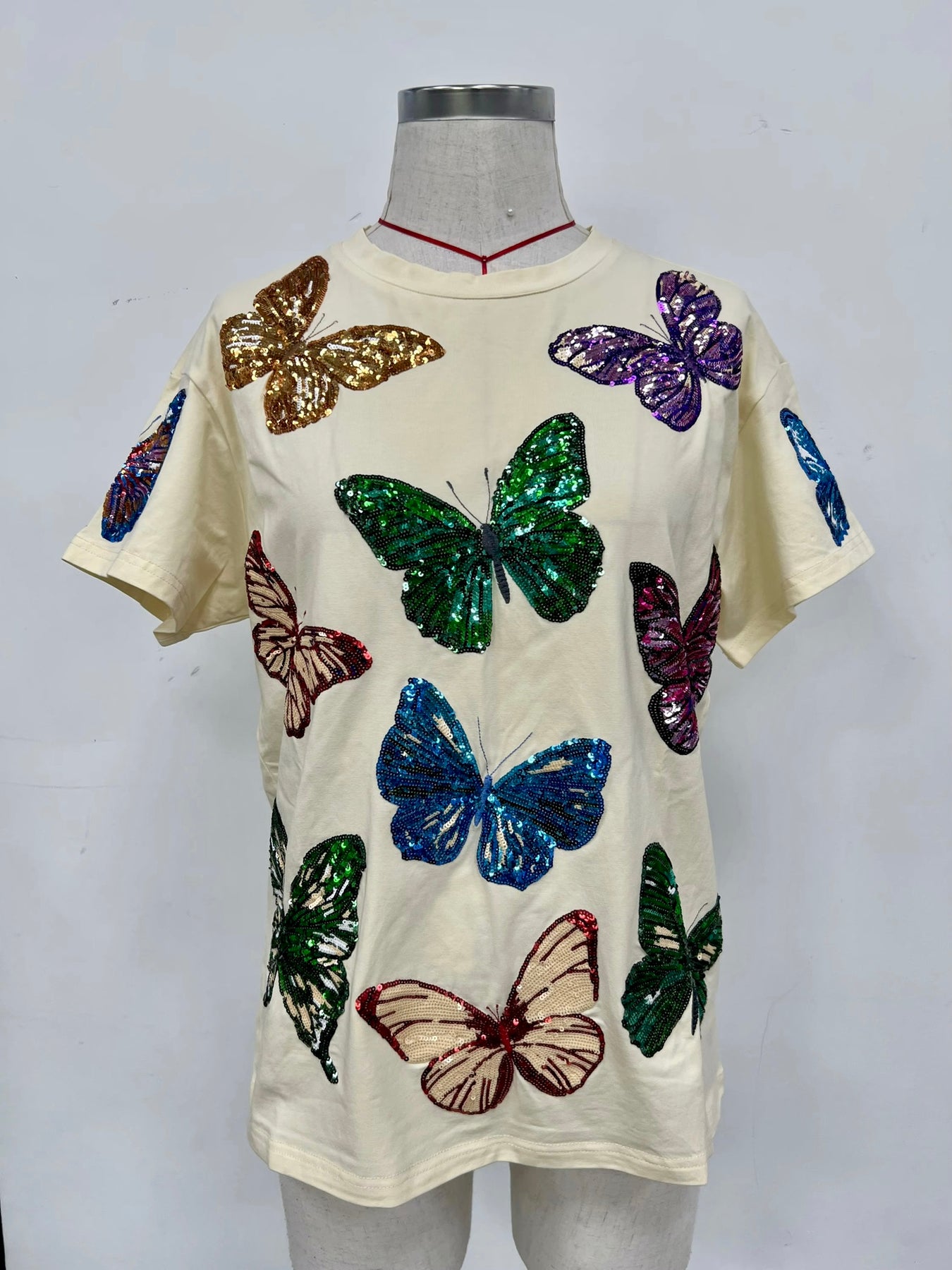 A fun, easy tee with colorful sequin butterflies all over. Super comfy with a relaxed fit and just the right amount of sparkle perfect to throw on with denim or shorts.