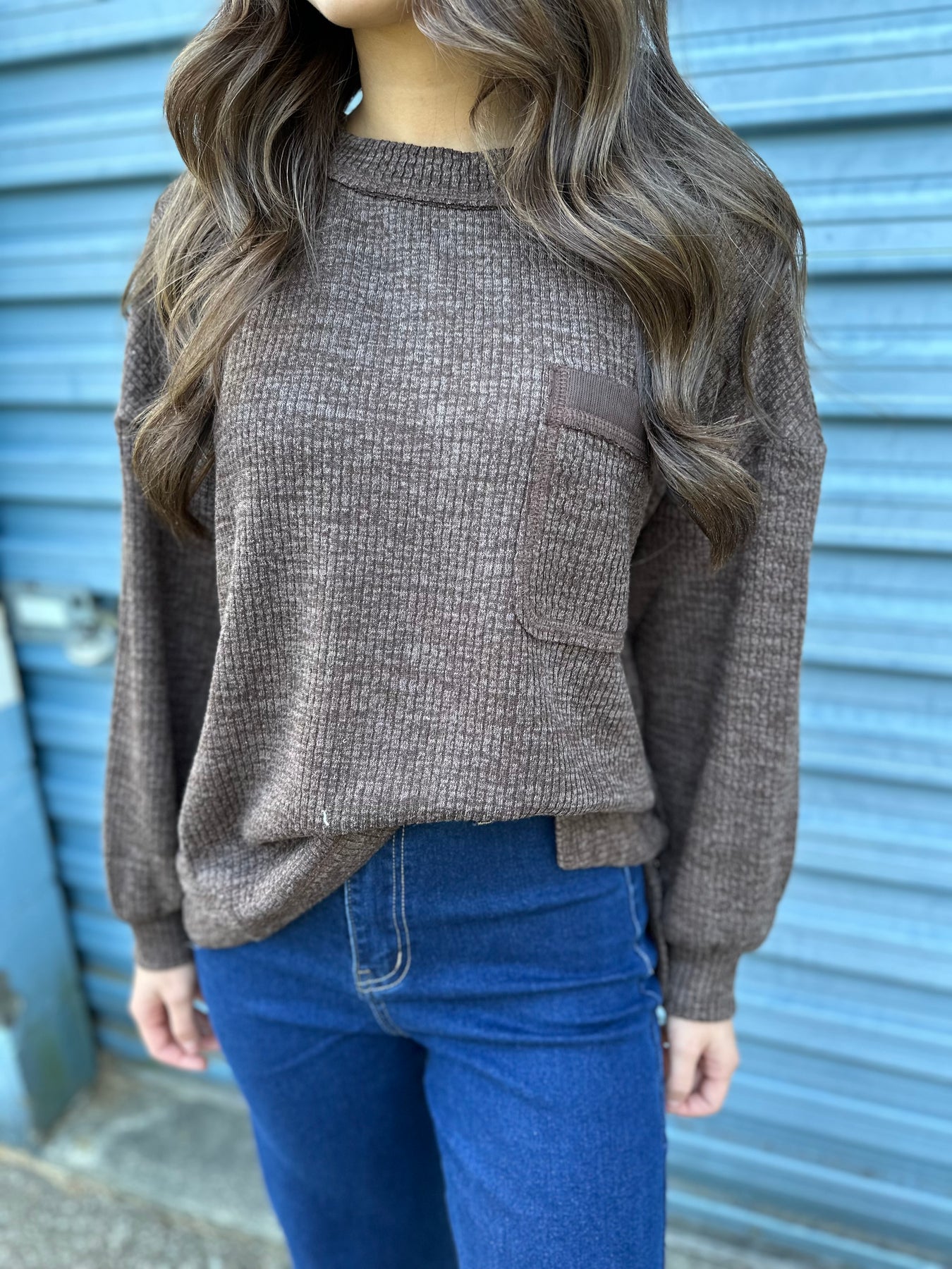 This cozy knit top features a classic crew neckline accented with subtle button details along the shoulder or sleeve, adding a touch of charm and uniqueness. The long sleeves provide warmth and comfort, while the soft knit fabric ensures a perfect fit for all-day wear. Ideal for layering or wearing on its own, this top blends timeless style with modern detailing effortlessly.