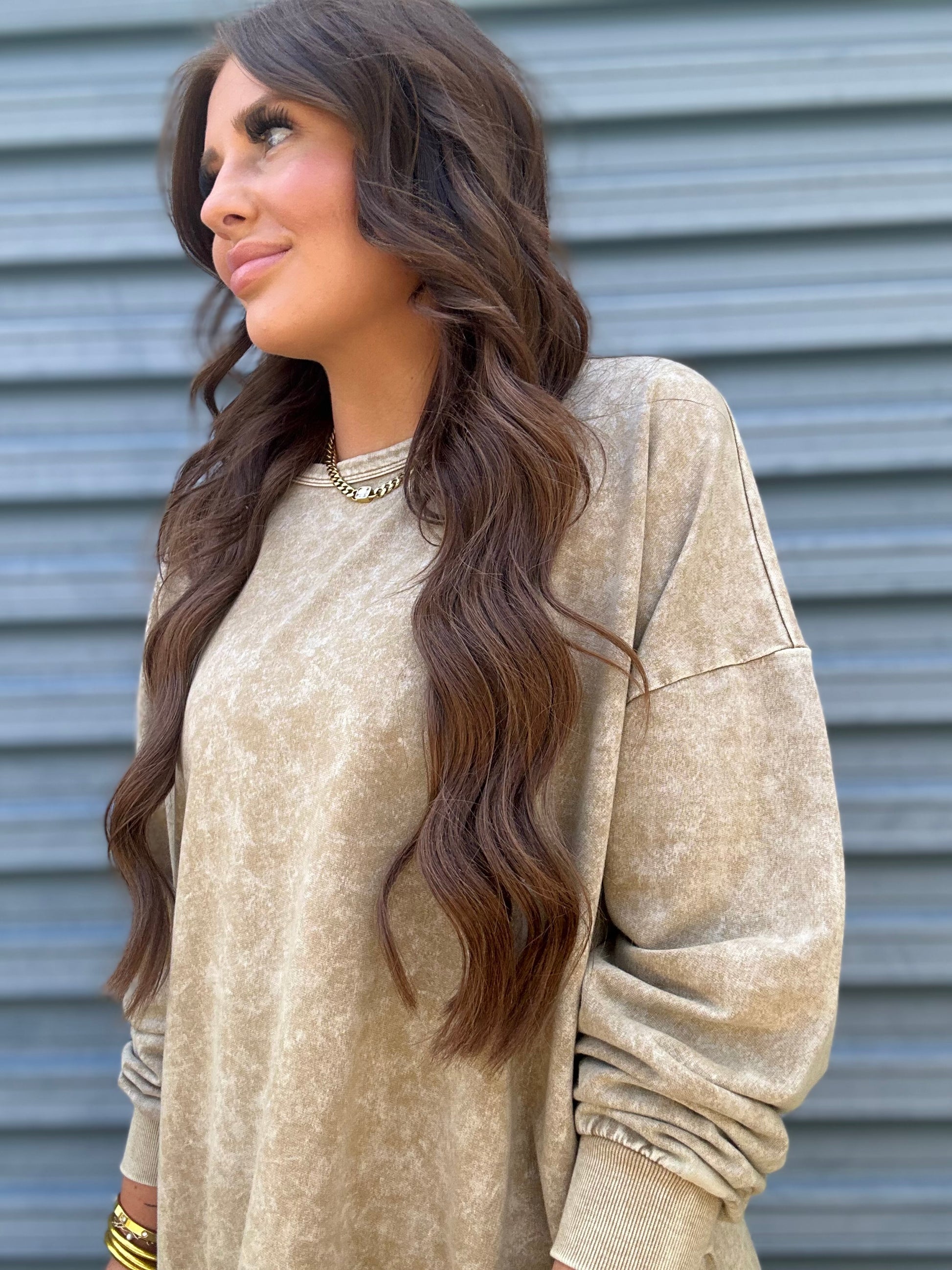 Introducing the Classic Crew Neck Sweatshirt, a perfect blend of comfort and minimalist style. This light brown sweatshirt is designed with a classic crew neck and long sleeves, making it an essential piece for any wardrobe.
