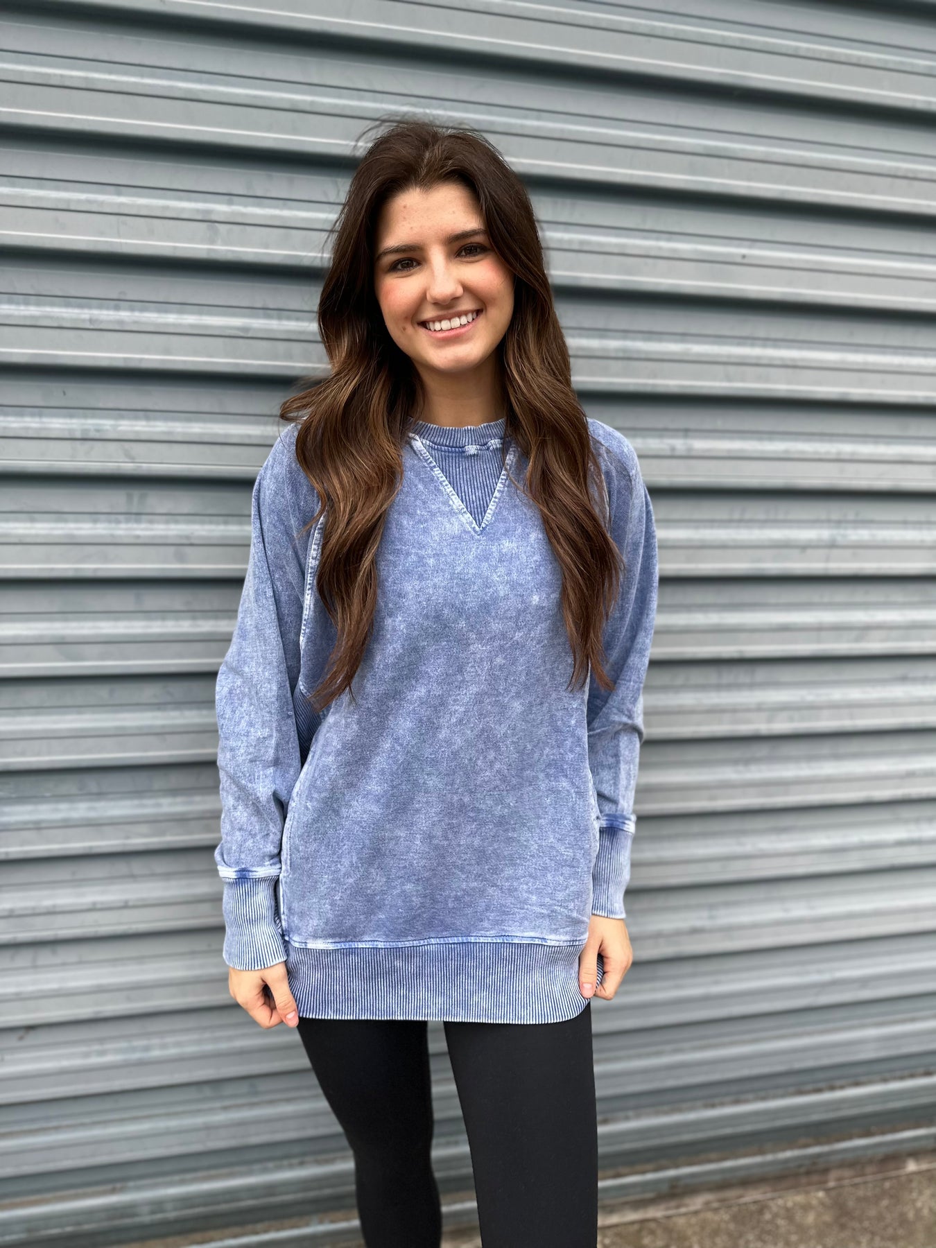 HALO-WASHED FRENCH TERRY ROUND-NECK PULLOVER