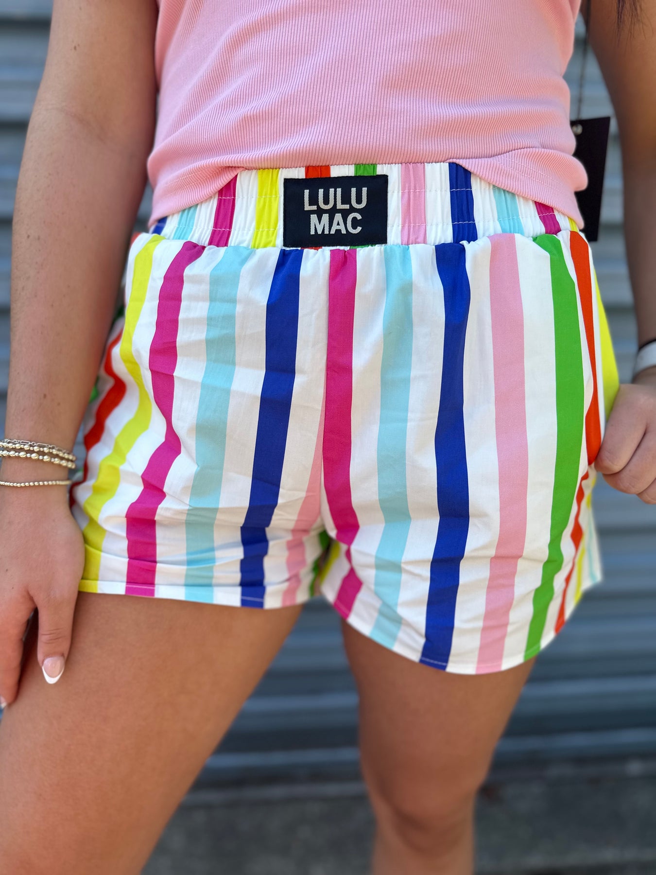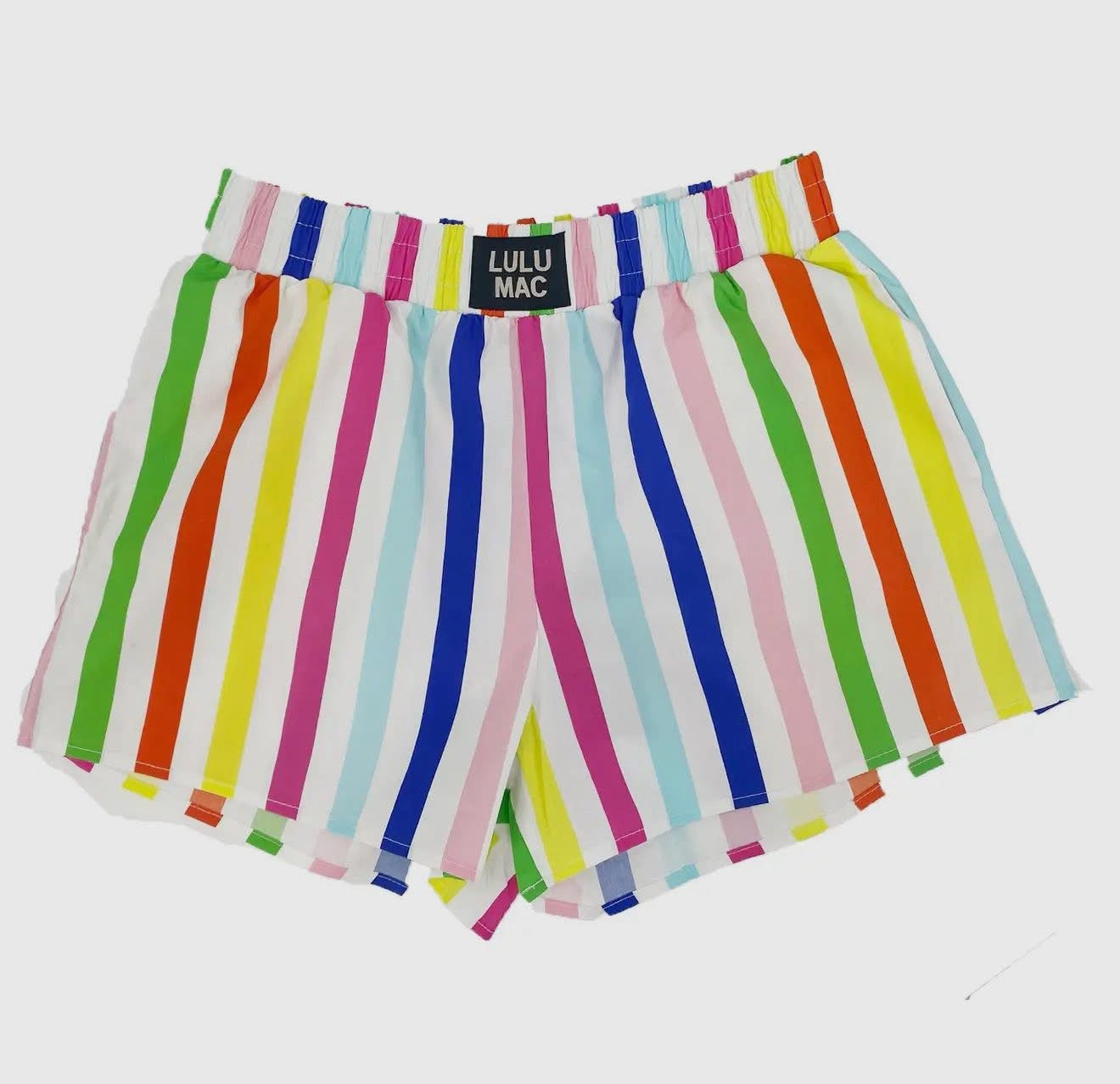 Lounge in style with these eye-catching boxer shorts. Choose from a bold, colorful striped design or a timeless red and white pattern. Made with comfort in mind and featuring the 'Lulu Mac' brand on the waistband, these shorts are perfect for relaxing at home or running errands.