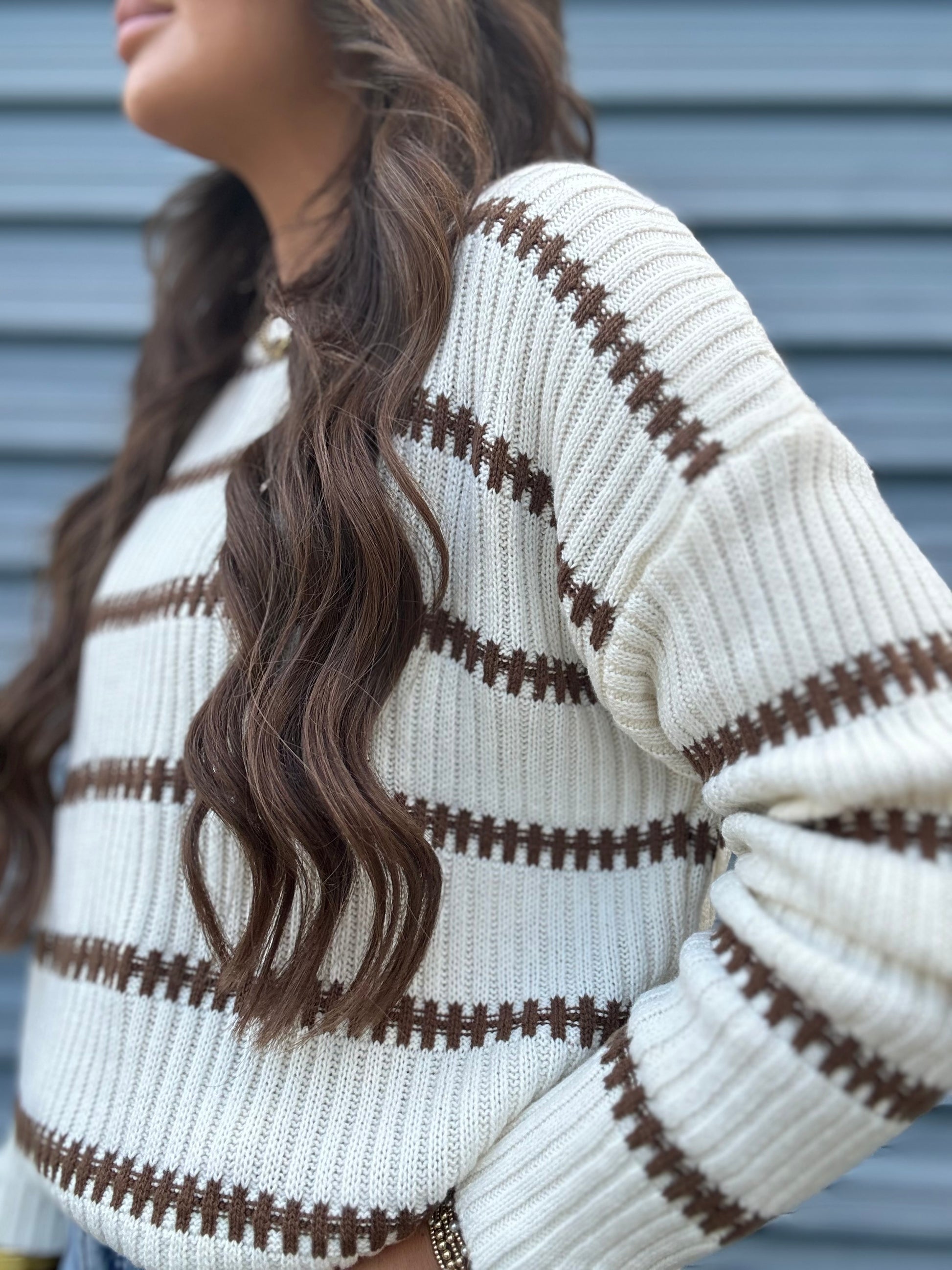 Wrap yourself in the effortless elegance of our Cream and Caramel Stripe Sweater. This isn't just a sweater; it's a wearable hug crafted from the softest, breathable knit that feels like a gentle embrace against your skin. The creamy base is beautifully contrasted with warm caramel stripes, creating a visual harmony that’s both soothing and stylish. Designed with a relaxed fit, it drapes beautifully, offering both comfort and a flattering silhouette.