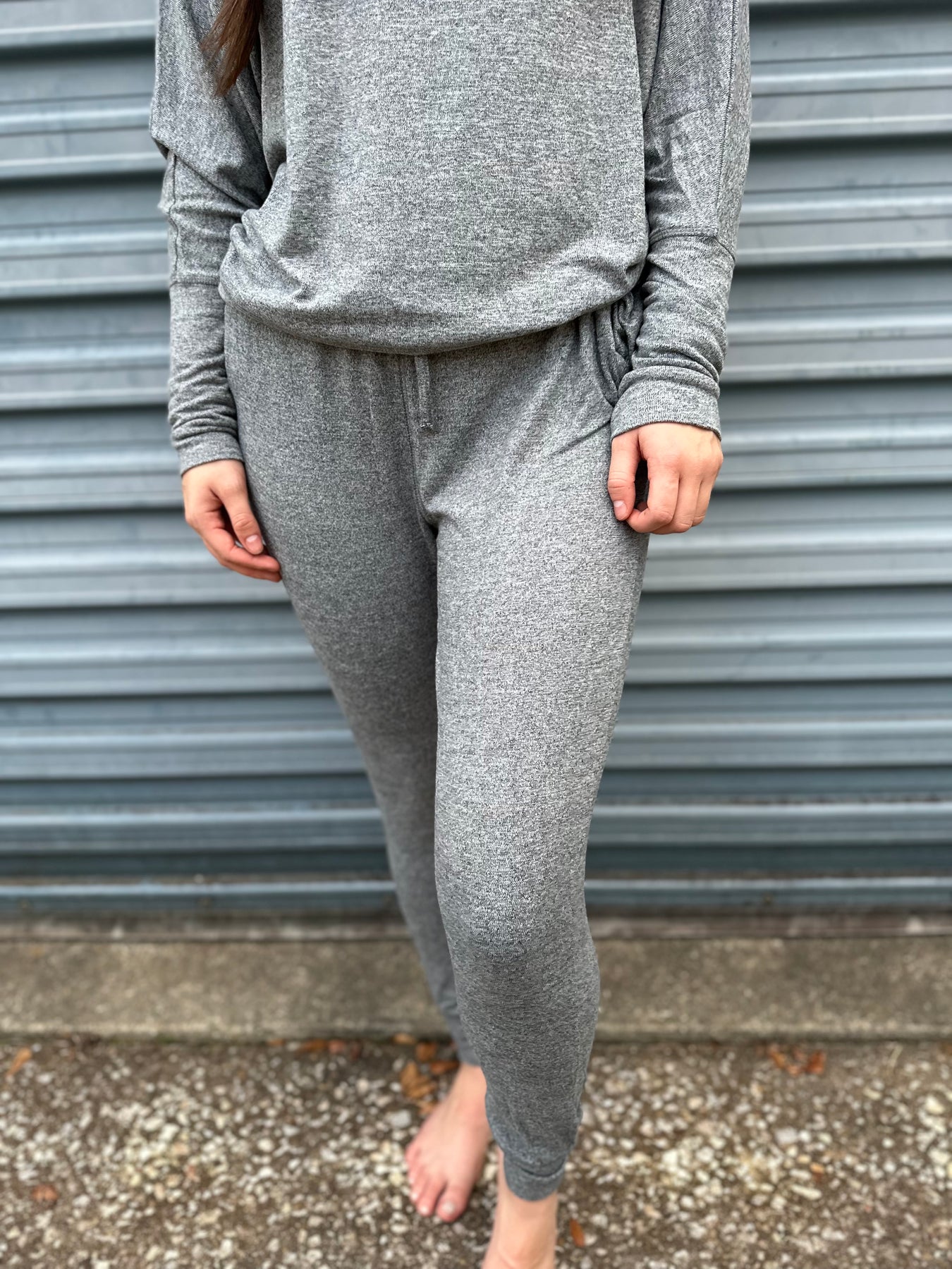 Cozy meets chic in these two-toned grey joggers. Made from an ultra-soft, snuggly fabric, they feature a light-and-dark grey contrast that gives them that effortless, lived-in look.